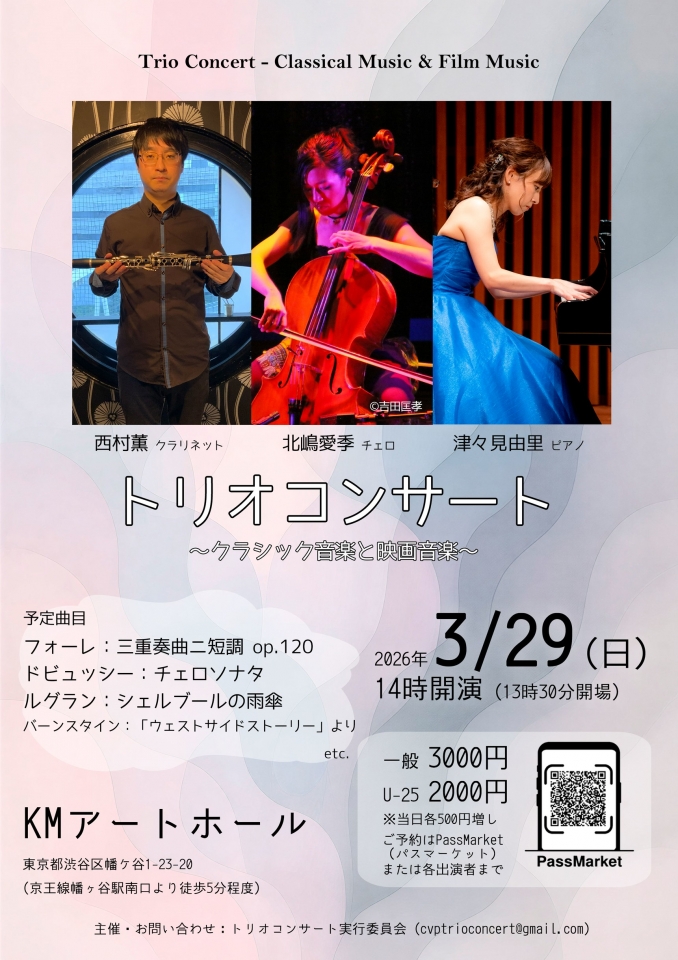 トリオコンサート 〜クラリネット、チェロ、ピアノで奏でるクラシック音楽と映画音楽~