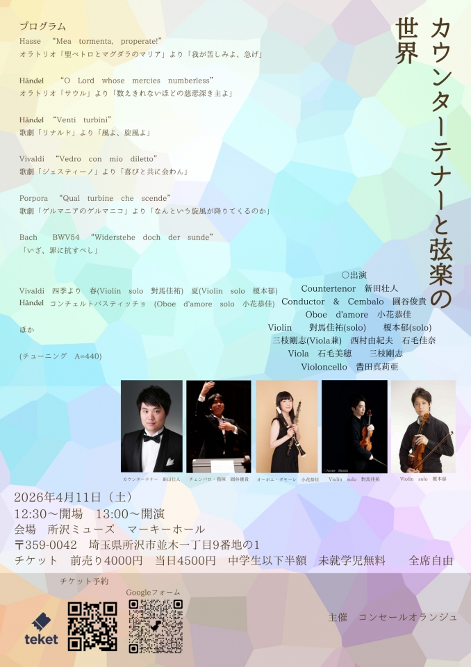 カウンターテナーと弦楽を中心としたプログラムをお楽しみください。