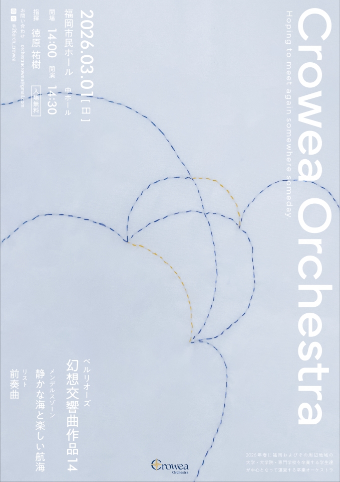 オーケストラで出会い繋がった26年春卒業予定の福岡およびその周辺の大学生、大学院生が「卒業前に再集結し、演奏会をしたい」という思いから始まったオーケストラ団体です。