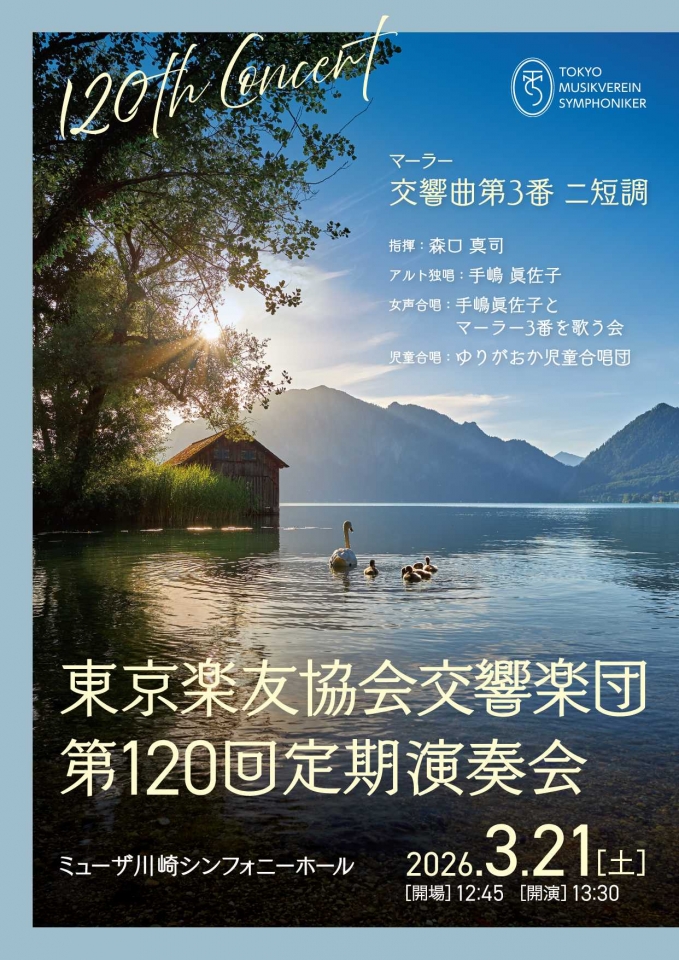 第120回定期演奏会ではオペラと宗教曲両方のジャンルで高い評価を受けている手嶋眞佐子、東京藝術大学の手嶋眞佐子門下生を中心に今回の演奏会のために特別に編成された「手嶋眞佐子とマーラー3番を歌う会」、2021年度川崎市文化賞受賞、地域に根差した活動を続けオーケストラとの共演も数多いゆりがおか児童合唱団とともにマーラー渾身の大作、交響曲第3番をお送りします招待券入手方法: 当団ホームページをご覧ください