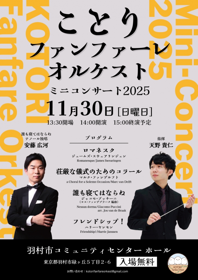 日時: 2025年11月30日(日)開演: 14時 (開場: 13時30分)