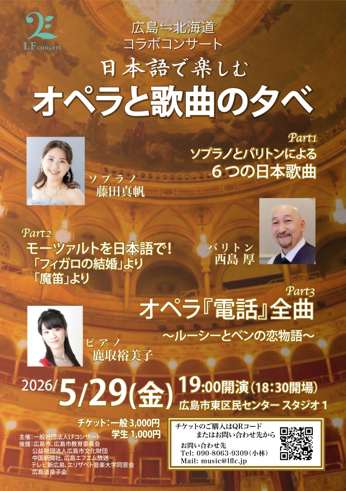 一般社団法人LFコンサート 〜 広島・北海道コラボコンサート〜日本語で楽しむ オペラと歌曲の夕べ