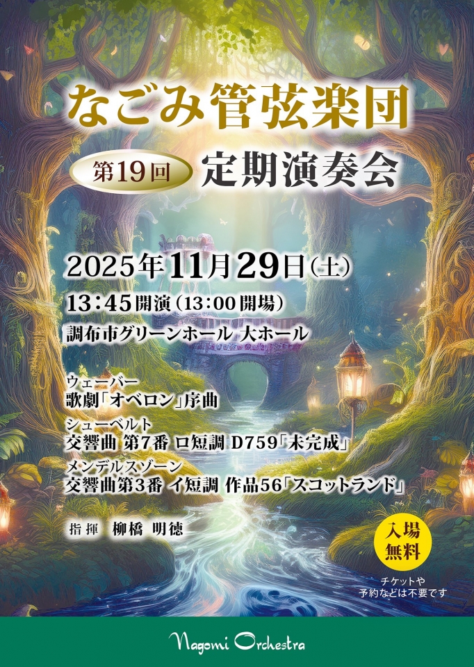 「名曲をたのしく、なごやかに」なごみ管弦楽団の今年の演奏会では、ドイツ・ロマン派の作曲家たちが織りなす、物語性豊かな3つの作品をお届けします。