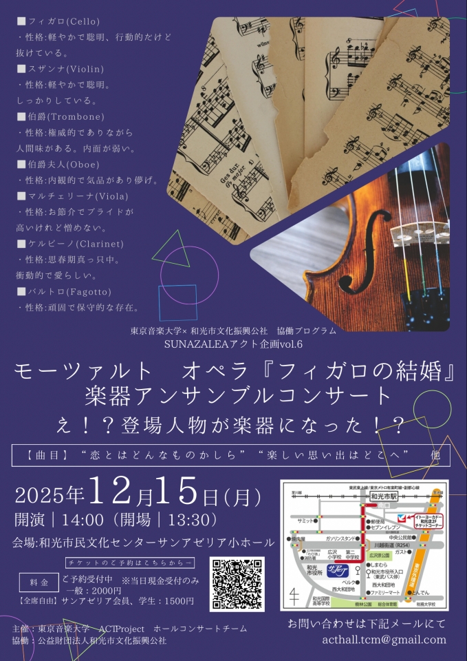 東京音楽大学 ACT Project ホールコンサートチーム モーツァルト オペラ 『フィガロの結婚』 楽器アンサンブルコンサート え!?あの登場人物が楽器になった!?